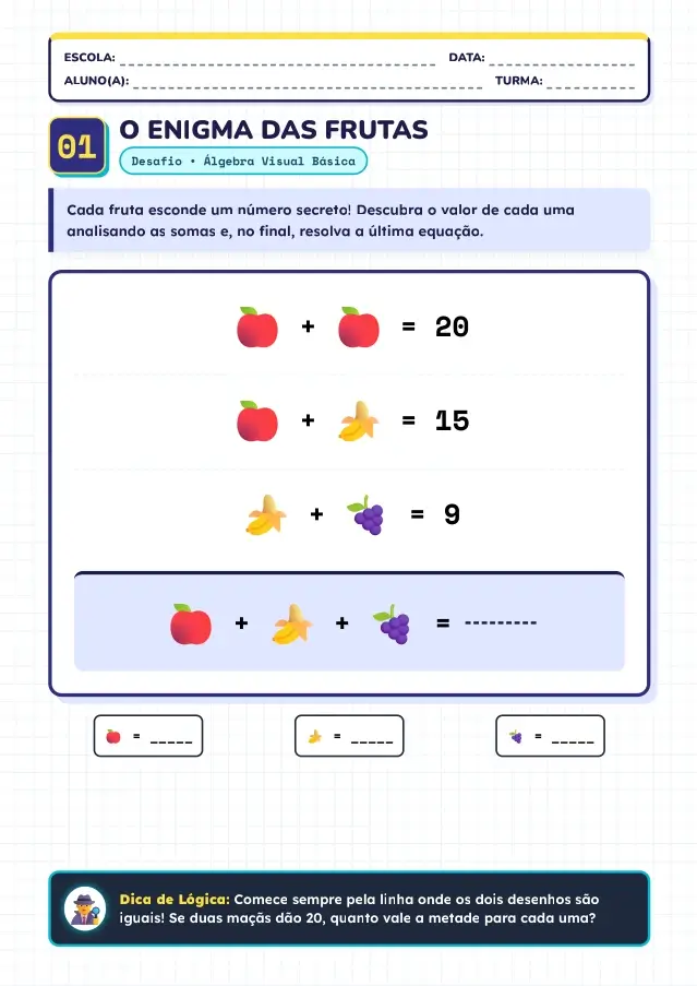 Uma coleção especial de 50 desafios inteligentes que estimulam o pensamento lógico e fazem o aluno enxergar a matemática de forma divertida.