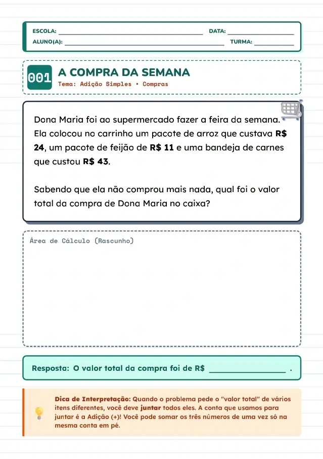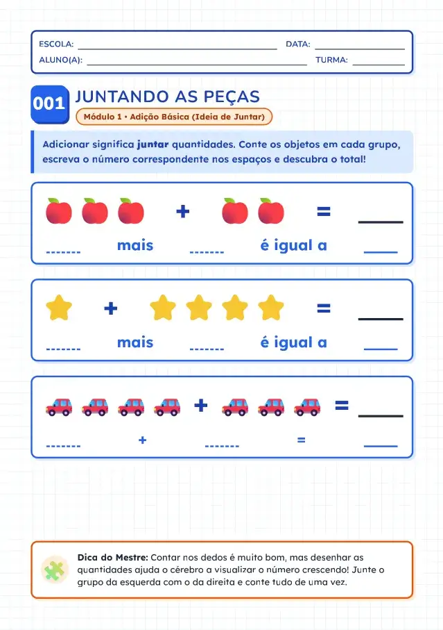 Aprenda passo a passo desde as contas mais simples até operações maiores, com atividades que ajudam a desenvolver rapidez, confiança e compreensão da soma.